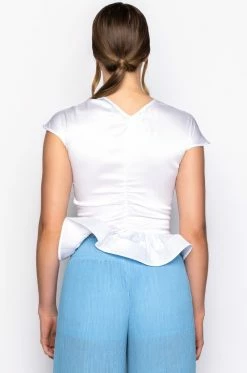 You’re the tops in the AKIRA Label Apex Short Sleeve Satin Peplum Blouse! This top is made from a slick satin fabrication and features a plunging neckline, short cap sleeves, ruched body detailing, a reinforced peplum hem, and an exposed front zipper closure.