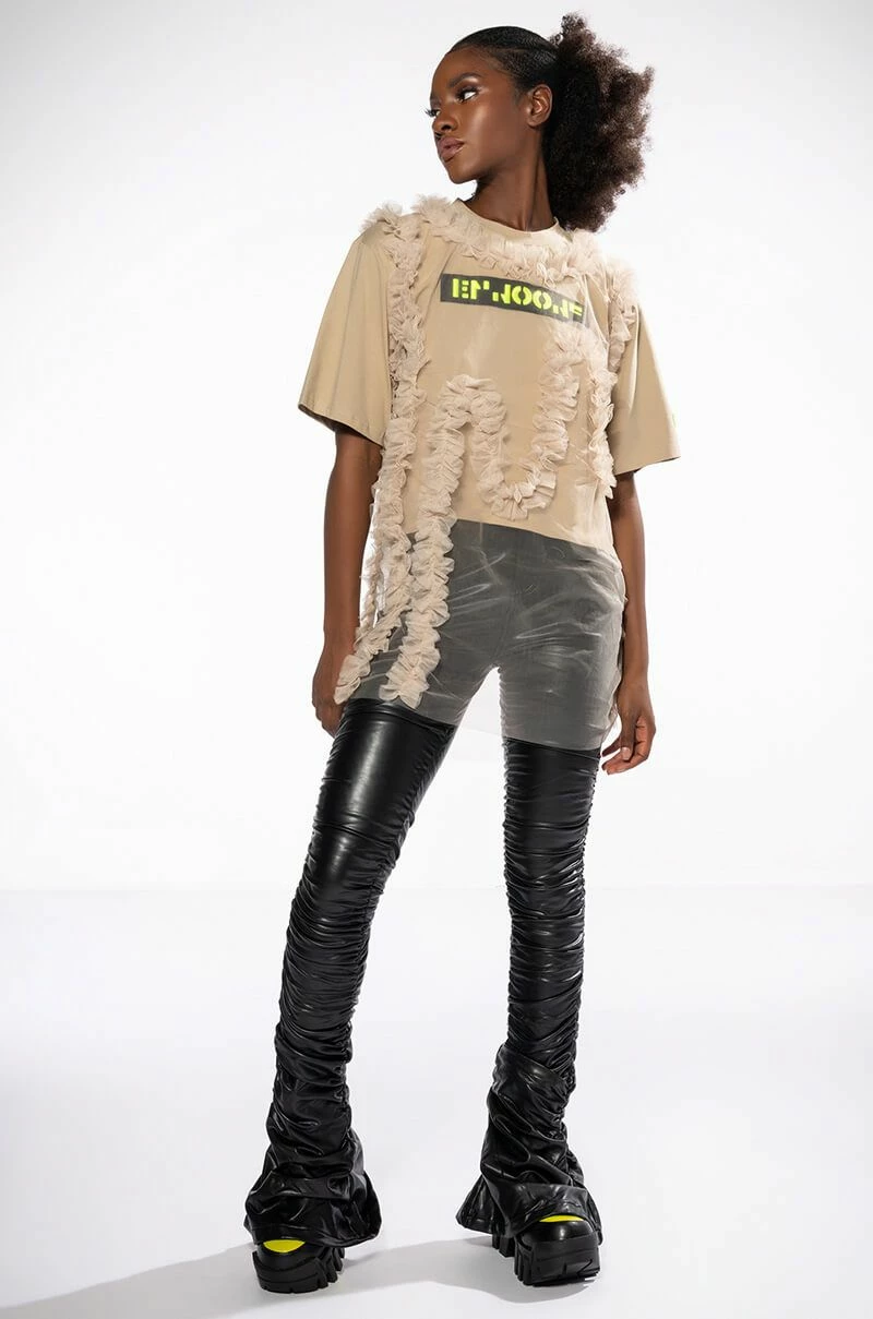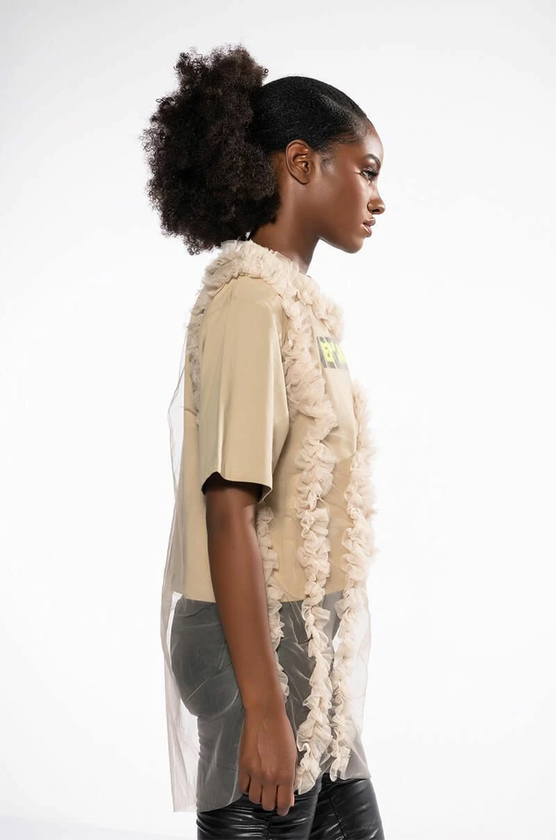 – 20” Shoulder to Shirt Hem, 31” Shoulder to Tulle Hem