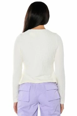 Take yourself out on a hot date with The AKIRA Label Date Night Tie Front Knit Cardigan! This cozy and glam cardigan is made from a soft, fuzzy fabrication and a chevron knit pattern. It features a scoop neck, long sleeves, and a rhinestone embellished front-tie closure. Pair with pleather pants and rhinestone embellished pumps for a completed luxe look!