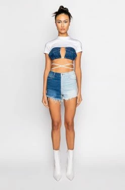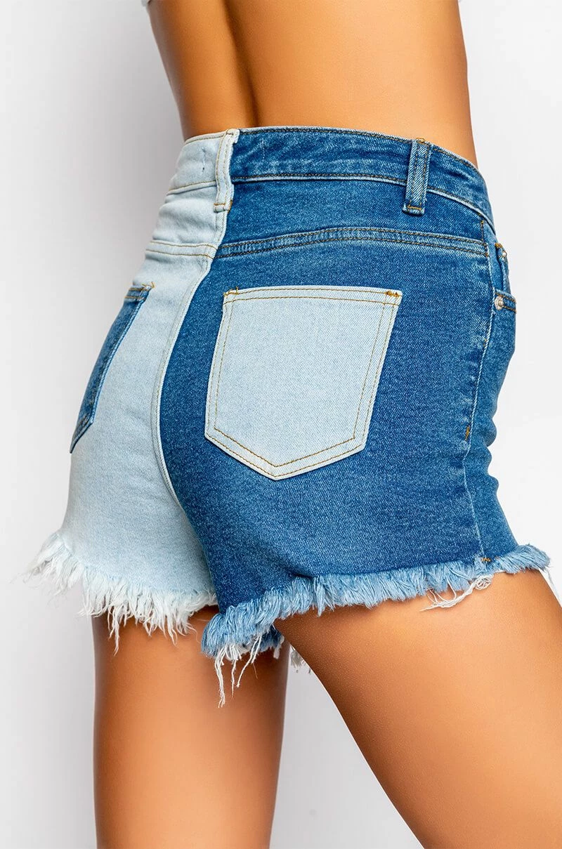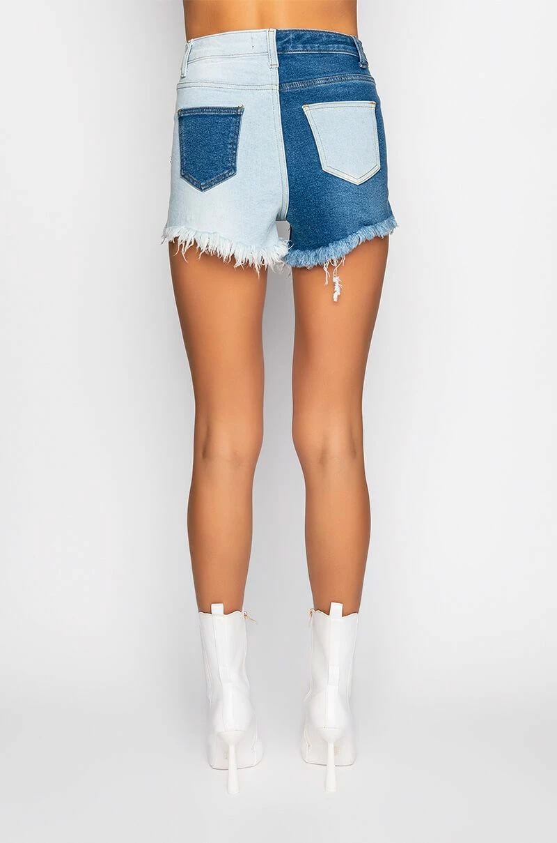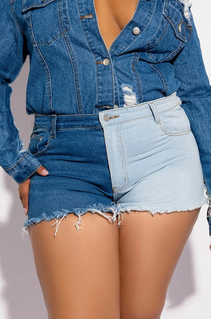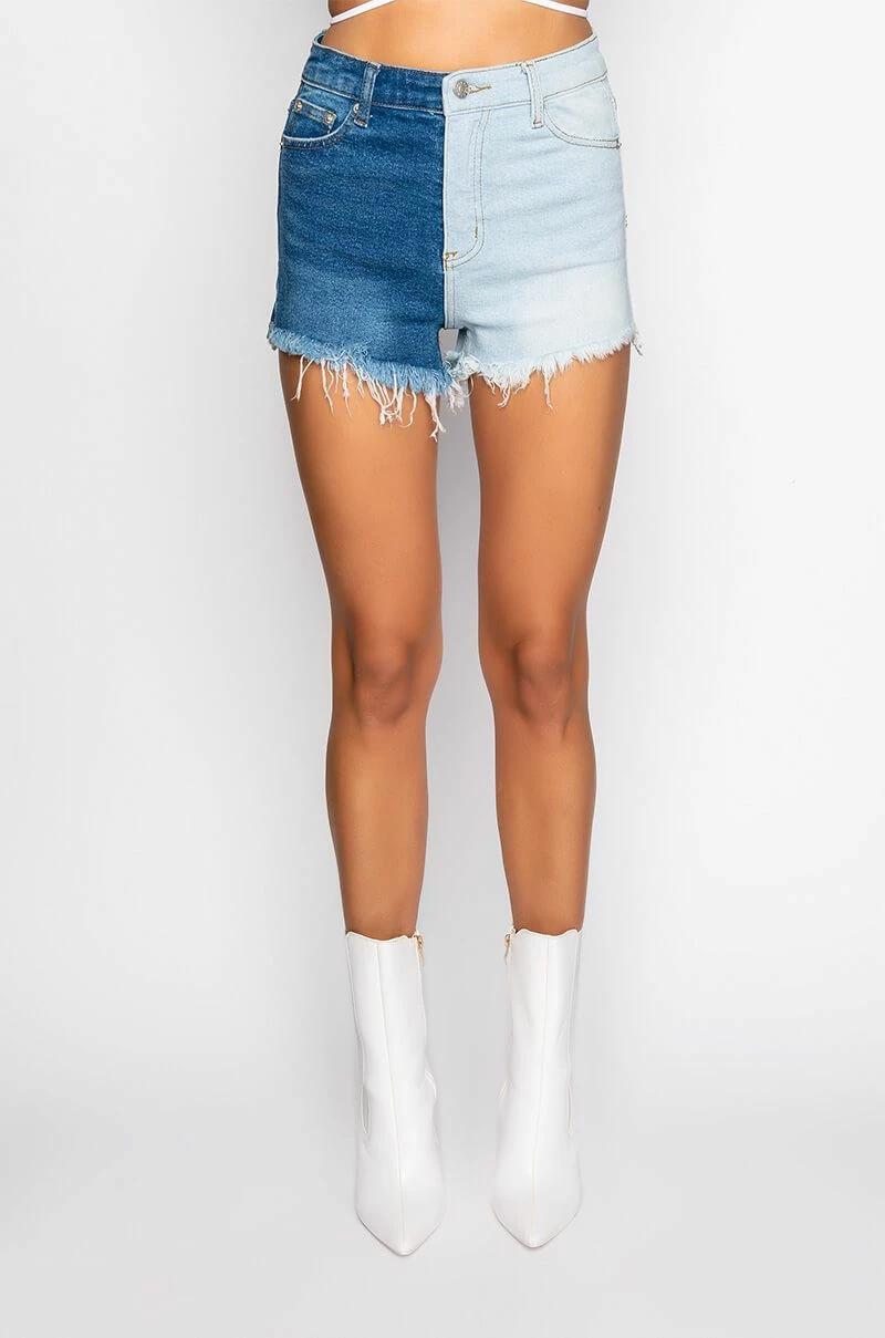 Have it your way with The AKIRA Label Depends On My Mood Two Tone High Rise Frayed Jean Shorts. These denim-based beauties feature a high rise waistline, a two tone wash, frayed hem silhouette, a five pocket design, and a classic button and zipper closure. Pair with your favorite cropped blouses for a perfect picnic ensemble.