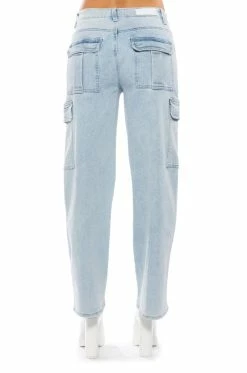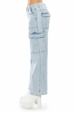 The AKIRA Label Eliza Denim Cargo Pant is made from a washed denim fabrication and features a high rise waist, working belt loops, front pockets, cargo flap back and side pockets, a wide leg silhouette, and a doubled button and zipper front closure. Pair this piece with the matching AKIRA Label Eliza Denim Corset Top and chunky sneakers to complete your look.