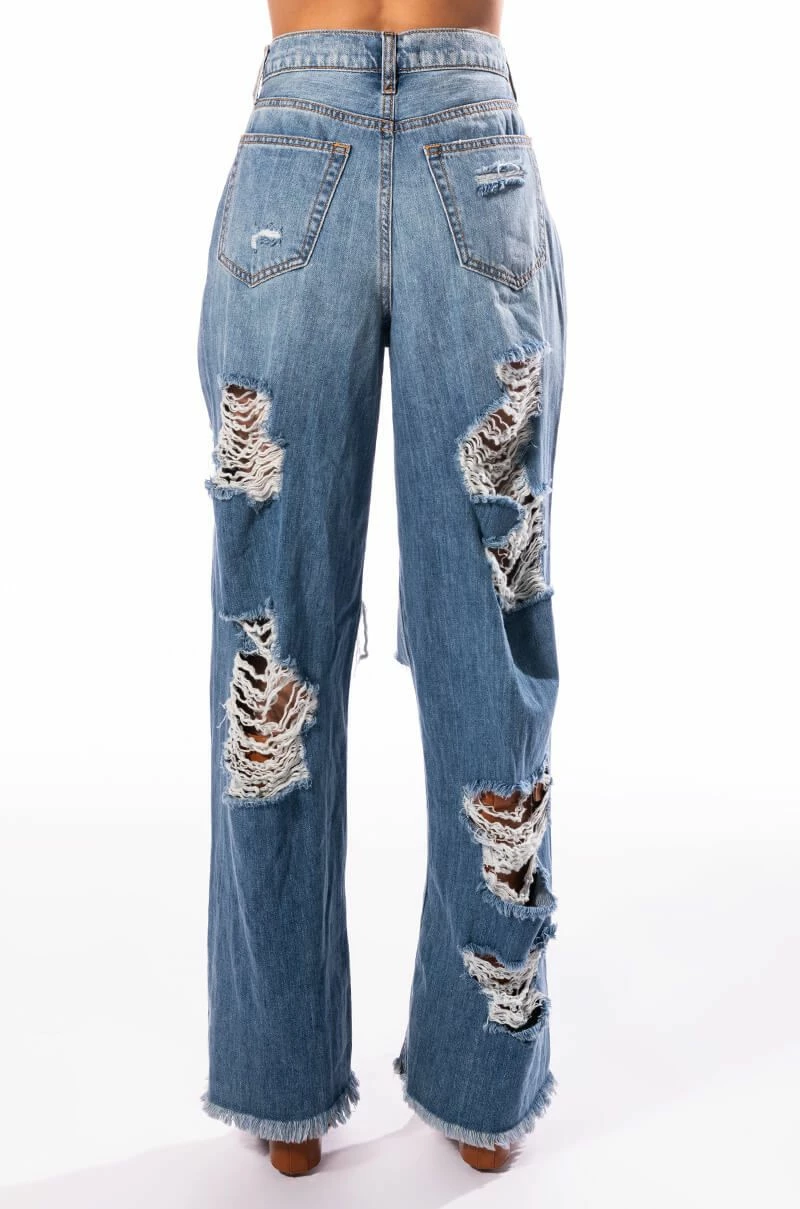 You’re the belle of the ball in The AKIRA Label Ella Bella High Rise Wide Leg Distressed Jeans. These ultra-distressed cotton-based denim pants feature a straight leg cut, high rise waist, five-pocket design, working belt loops, and a classic button and zipper closure. Complete with slashed distressed detailing throughout and raw hem trim.