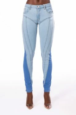 Shoot your shot in The AKIRA Label Make Your Move Low Rise Skinny Jeans. These two tone pants feature a stretch denim base, a five pocket design, a button zipper enclosure, and a trendy low rise waist. Complete with vertical contrast seam detailing, two distinct denim washes, and a skinny leg fit. These fresh jeans can be dressed up or down depending on your mood, regardless you’ll be sure to stun!