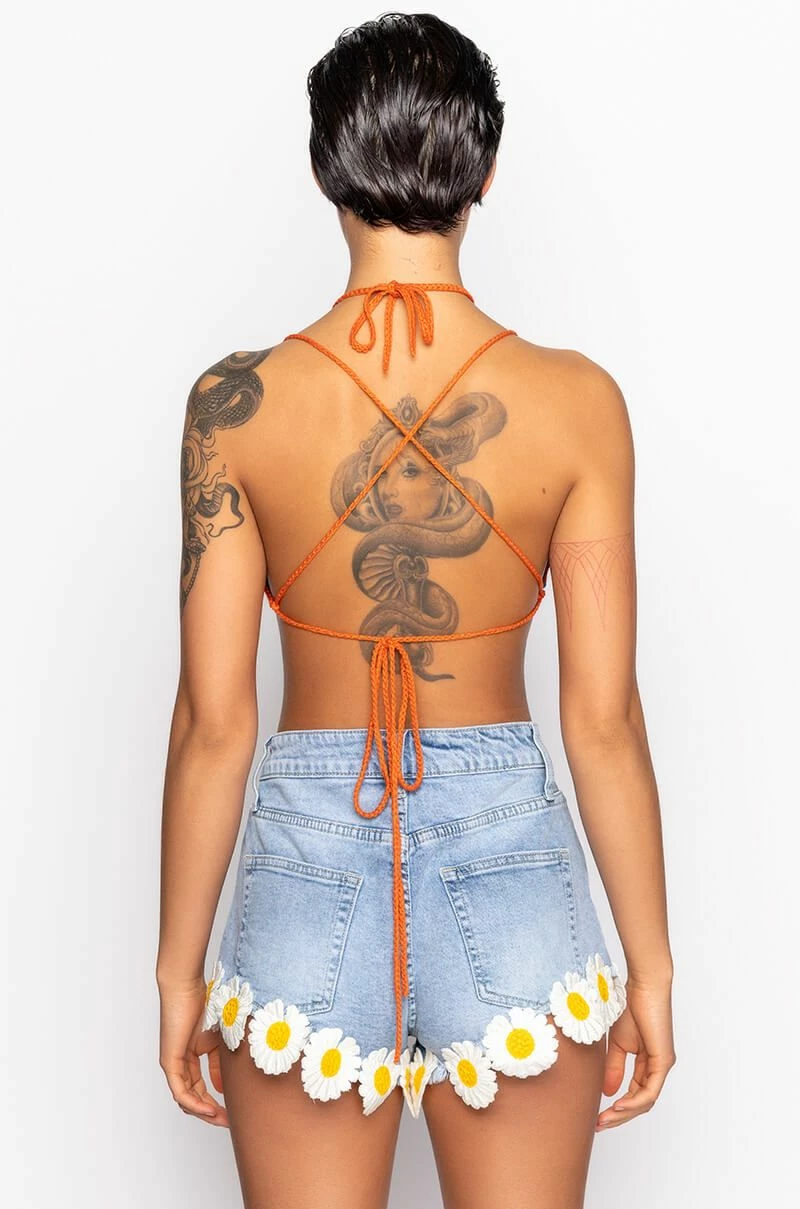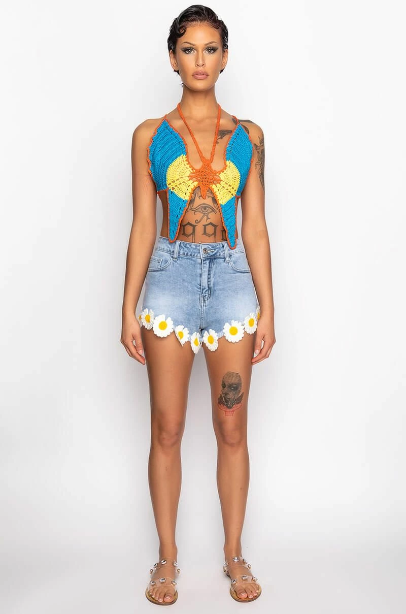 Soar in style with The AKIRA Label Mariposa Crochet Halter Top! This patterned piece is made from an unlined crocheted base and features a halter tie neckline, a multicolor butterfly design, cropped length, and a sexy open back with self ties. Pair this piece with high waisted bottoms and strappy sandals for a flirty, colorful look!