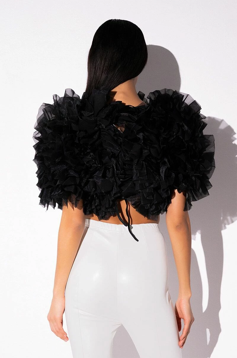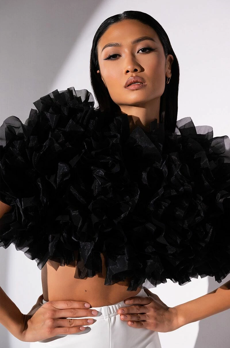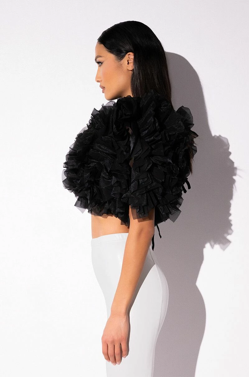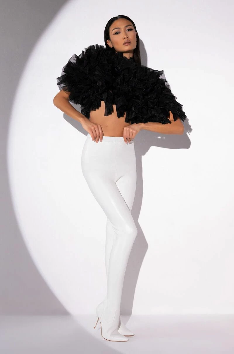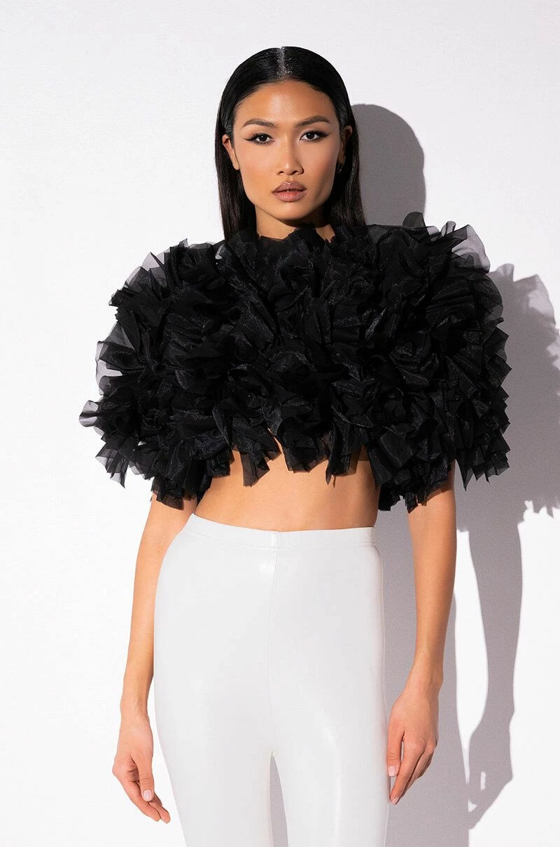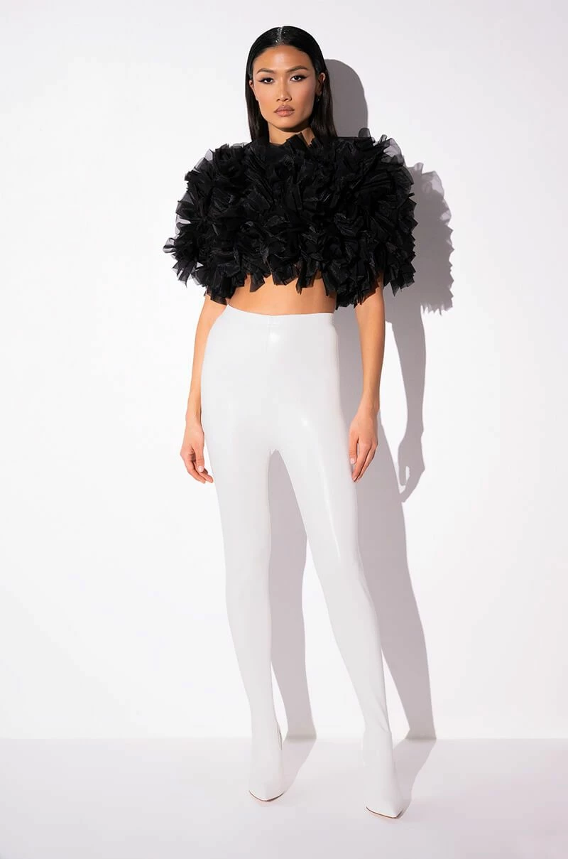 The AKIRA Label Must Be Dreaming Floral Top is your dream come true. This flirty top features a sheer base, a ruffled fabrication, a crew neckline, cropped cut, and short ruffled sleeves, Complete with an exposed back and dual tie back closures. Complete your dreamy look with pleather pants and strappy sandals.