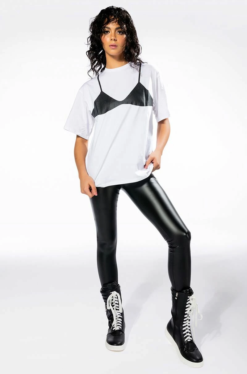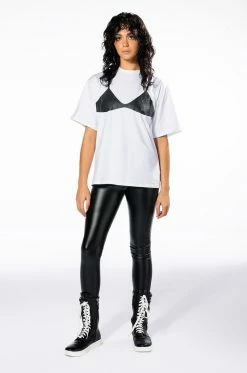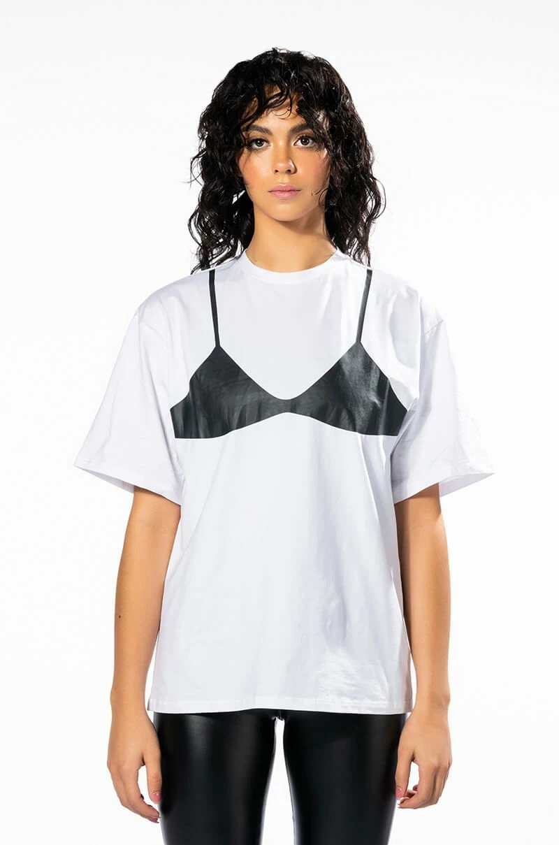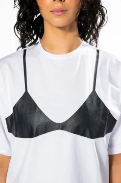 The AKIRA Label Silhouettes Short Sleeve Printed Tshirt features a stretch cotton fabrication, a crew neckline, short sleeves, and an oversized silhouette. Complete with a graphic bikini print. Pair this graphic piece with leather pants, high top sneakers, and aviator sunglasses to finish off your look.