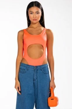 Make the dance floor yours with The AKIRA Label Sleeveless Disco Cutout Cheeky Bodysuit! This funky fresh piece is made from a slick and stretchy fabrication and features a rounded neckline, a sleeveless silhouette, a sexy oval waist cutout, an open back, a cheeky bottom fit, and a snap gusset closure.