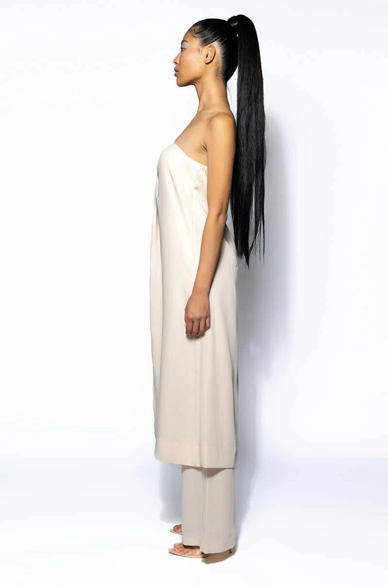 The AKIRA Label So True Strapless Top is made from a smooth fabrication and features a strapless design, an inner bralette with padded cups and an elastic hem, a cascading open front, a longline silhouette, and a tonal back zipper closure. Style this piece with the coordinating AKIRA Label So True Palazzo Pant to complete your look.